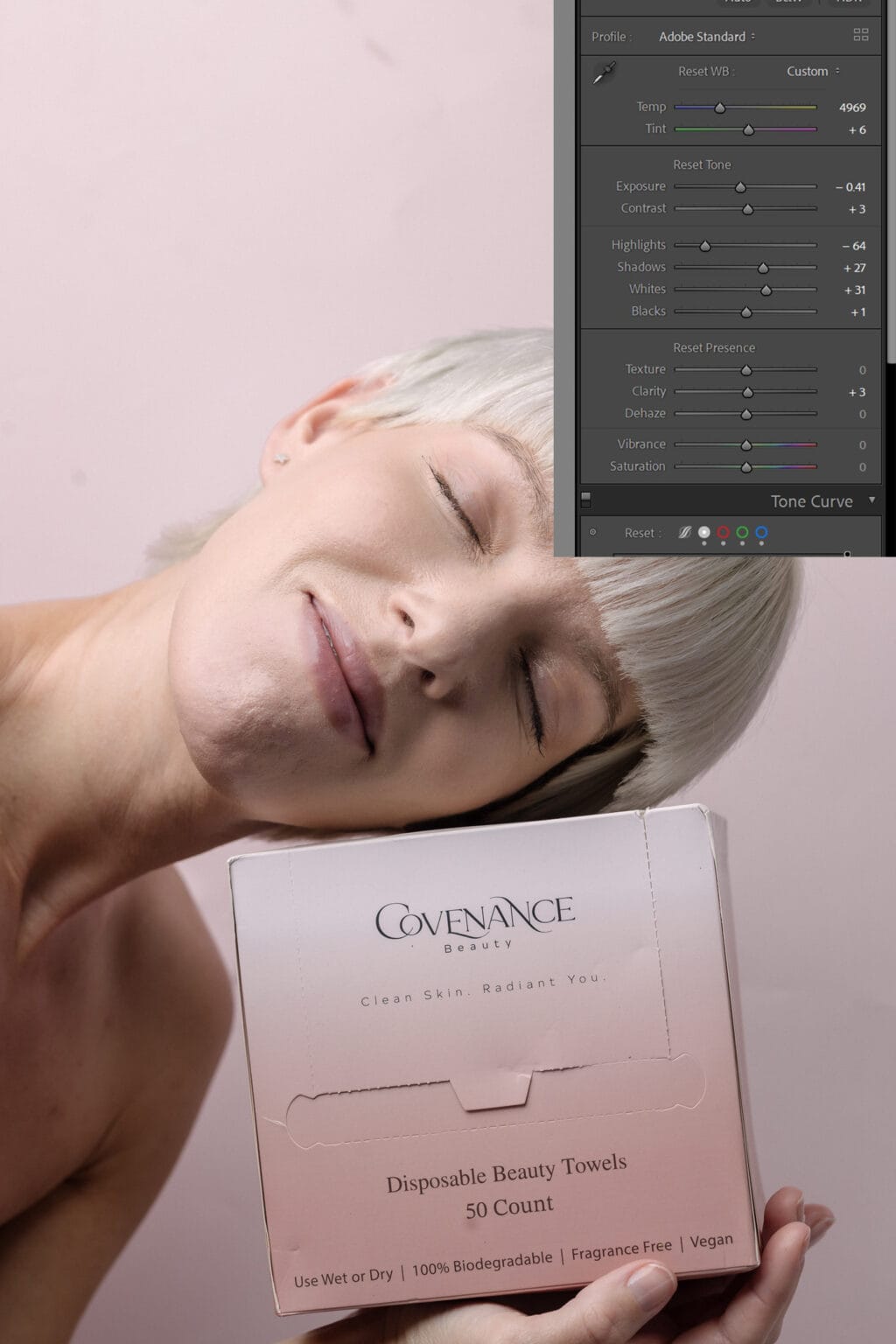 最近のスキンケアキャンペーンをいくつかのタレントAIオプションで実行して、結果をお見せします。私は モダンクラシックタレントプロファイルを使用しました. 同じプロファイルで編集されたにもかかわらず、各画像がその画像のニーズに合わせた調整を受けたことがわかるでしょう。